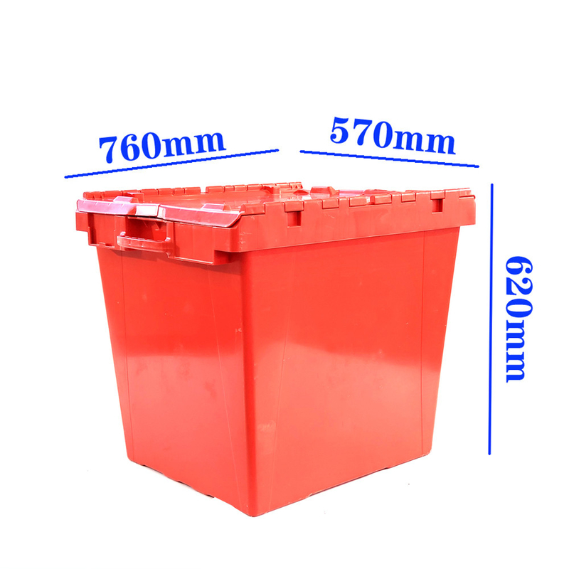Created with Pixso. 171L حجم کار سنگین جعبه های حمل و نقل پلاستیکی قابل نصب با کانتینر پوشه متصل